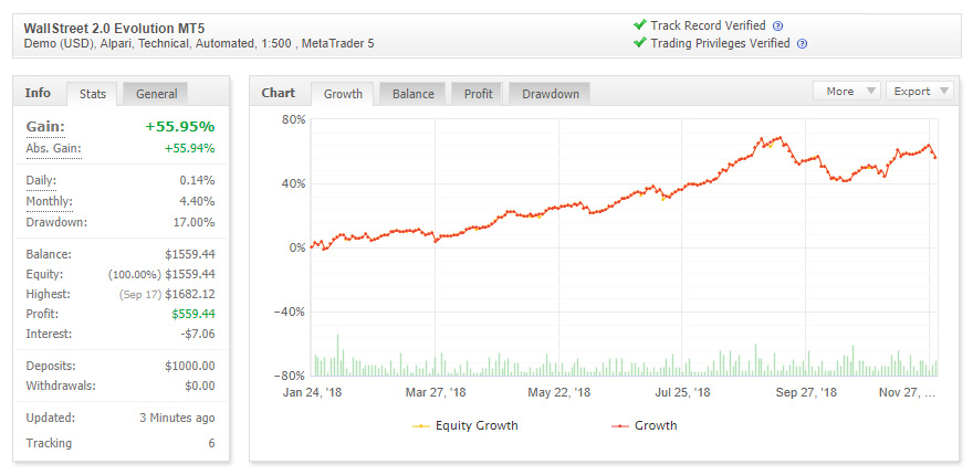 WallStreet Forex Robot 2.0 Evolution REAL MONEY performance