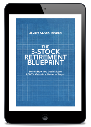 Dear Reader, Here’s your copy of The 3-Stock Retirement Blueprint: How You Could Score See 1,000% Gains in a Matter of Days.  Click here to access it now. I’ve just released the names and tickers of the 3 stocks on my radar. If you’re interested, then click here for details. As a reminder, you’ve also been signed up for my free daily e-letter, Jeff Clark’s Market Minute. I’ll send you a quick email of my daily market analysis -- every single day the market is open. I suggest you pay close attention to these emails as they could be instrumental in helping you place sage trading decisions. That’s it for now. Thanks again for subscribing, and look for my next email tomorrow... Best regards and good trading,  Jeff Clark Editor, Delta Report |