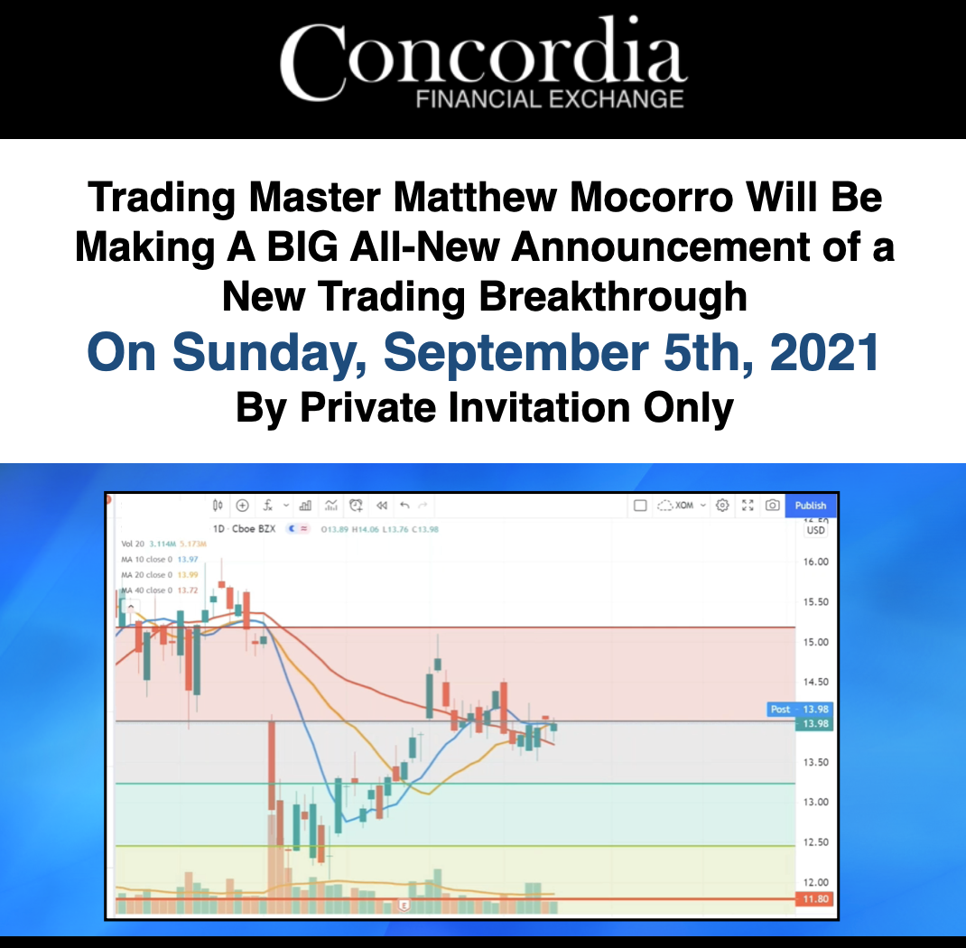| VIP NOTIFICATION: Trader Trader   Trader On Sunday, September 5, 2021 at 9:00 AM ET... Trading expert Matthew Mocorro will be holding this BIG announcement... Creating this rare opportunity for you to see the Latest Market Breakout Formula in action that could transform your future trading results! FOR MATTHEW MOCORRO'S MAJOR ANNOUNCEMENT |